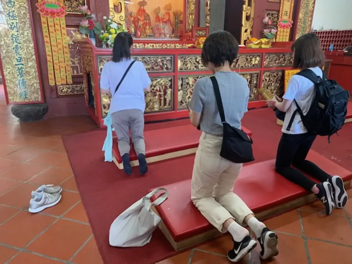 Students learning the significance of fortune reading processes at the Goddess of Mercy Temple